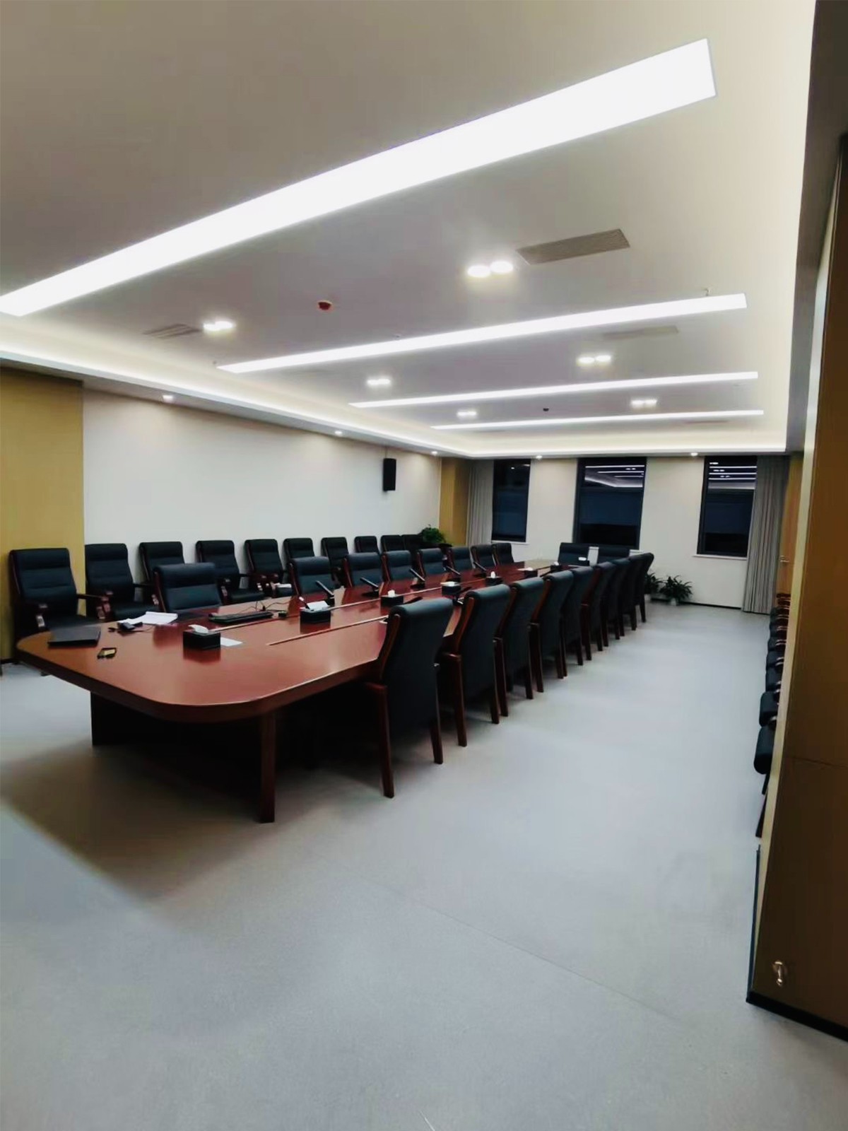 某地方政府单位部署托顿电子TD5599H无线会议系统,旨在构建安全、高效与现代化的会议环境。该系统具备以下核心优势:部署灵活,简洁专业。采用无线架构,彻底规避了传统布线的复杂性与局限性,实现了会议空间的快速整合与布局优化,彰显严谨务实的政务形象。通信稳定,音质清晰。搭载先进的抗干扰技术与高保真音频处理单元,确保在全场景会议应用中发言传输稳定、无中断,保障了会议信息传递的准确性与流畅性,该系统满足了政务会议的重要要求。功能集成,流程规范。2.8寸LCD显示屏集多功能于一体,实现了会议流程的标准化与数字化管理,显著提升了议事决策的效率与规范性。该系统的成功应用,为单位推进治理能力现代化提供了坚实的技术支撑。